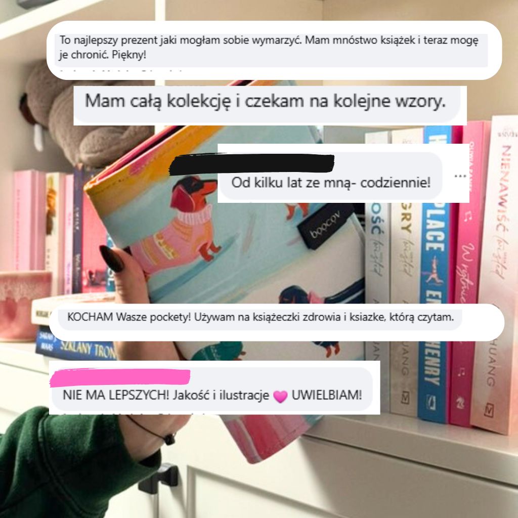 Do okładki włożycie jedną książkę (twardą lub miękką). Jest na książce cały czas- podczas czytania i w podróży.